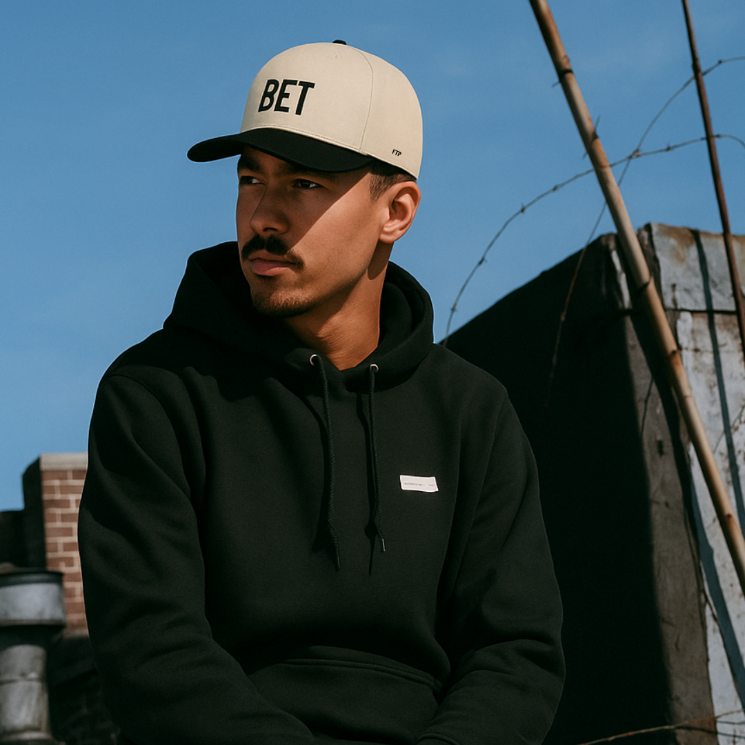 The structured Otto Cap 31-069 provides a classic mid-profile fit, while the raised “BET” embroidery on the front keeps the message simple and confident. Finished with subtle FTP side embroidery, this snapback balances statement style with everyday wearability.