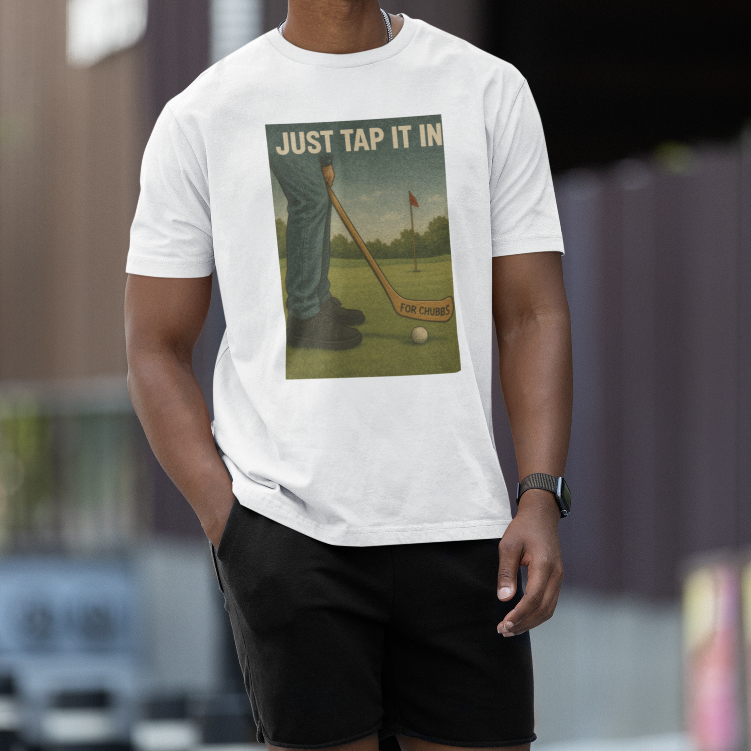 Level up your tee game with the Happy Gilmore For Chubbs Vintage Tee — a nostalgic tribute to one of golf’s most unforgettable scenes. Featuring a large, distressed-style graphic that reads “Just Tap It In” and “For Chubbs,” this shirt blends 90s comedy gold with vintage streetwear aesthetics.