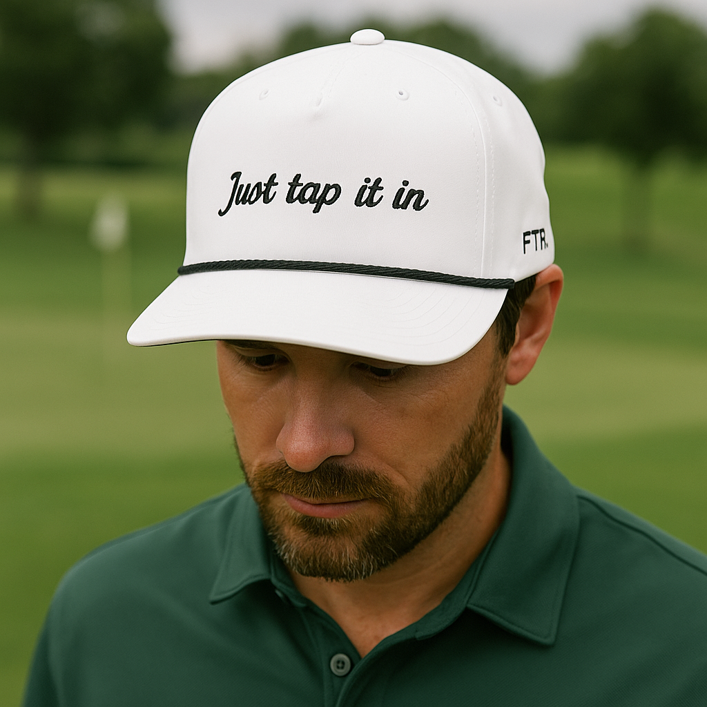 A true nod to golf culture and iconic one-liners, the "Just Tap It In" rope hat brings attitude and humor to your game. Whether you're lining up a birdie putt or sinking one for double, this golf hat keeps the vibes light and the style sharp.