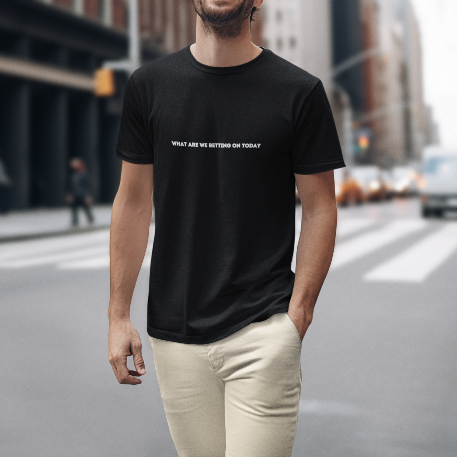 Get ready to show off your passion for the game with the bold “What Are We Betting on Today?” graphic tee. Whether you’re a seasoned sports bettor, a die-hard fan, or just live for the thrill of the action, this tee brings the energy every day.
